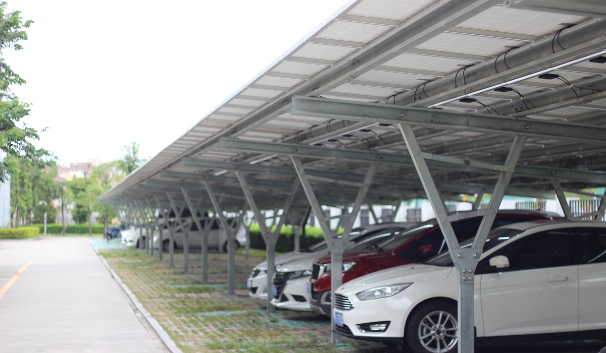 聚輝能源自主研發(fā)的太陽(yáng)能車(chē)棚發(fā)電系統(tǒng),由太陽(yáng)能電池板、車(chē)棚支架、逆變器、并網(wǎng)柜、電纜等設(shè)備組成。