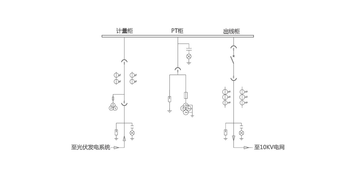 聚輝能源自主研發(fā)的分布式光伏電站電網(wǎng)接入系統(tǒng),將成套一次開關(guān)設(shè)備和綜合自動(dòng)化系統(tǒng)進(jìn)行集成,一次回路包含:進(jìn)線柜、PT柜、計(jì)量柜、出線柜;二次控制回路包含:數(shù)據(jù)采集、電能質(zhì)量