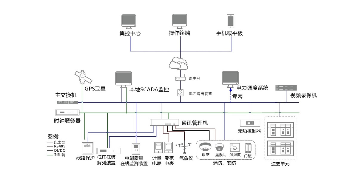 該系統(tǒng)嚴(yán)格按照國家電網(wǎng)分布式接入標(biāo)準(zhǔn)及地方電網(wǎng)要求設(shè)計(jì),適用于10~35kV 電壓等級(jí)并網(wǎng)的分布式光伏電站,滿足不同地區(qū)電網(wǎng)調(diào)度的需求。