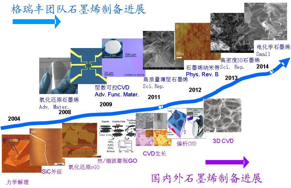 蘇州格瑞豐技術(shù)研發(fā)團(tuán)隊(duì)在高質(zhì)量薄層石墨烯制備方面,具有多年技術(shù)積累,解決了質(zhì)量、規(guī)模、工藝、成本等一系列技術(shù)問(wèn)題。已經(jīng)申請(qǐng)了與石墨烯制備和應(yīng)用相關(guān)專利30多件,已獲授權(quán)專利10件。下圖顯示了格瑞豐團(tuán)隊(duì)和其他國(guó)內(nèi)外在石墨烯制備方法的持續(xù)進(jìn)展。