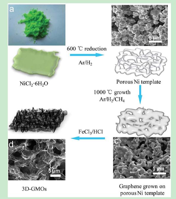 三維石墨烯由于其獨(dú)特的三維結(jié)構(gòu),優(yōu)異的物理性質(zhì)與潛在應(yīng)用迅速引起廣泛關(guān)注?;瘜W(xué)氣相沉積(CVD)法制備的三維石墨烯由于具有高的比表面積、優(yōu)異的導(dǎo)電性和多孔結(jié)構(gòu),成為目前石墨烯相關(guān)材料最為熱門(mén)的材料之一。而三維石墨烯的最近報(bào)道都是基于泡沫鎳生長(zhǎng)的三維石墨烯及其復(fù)合物研究,而且泡沫鎳制備的三維石墨烯密度低孔隙率大,限制了其力學(xué)強(qiáng)度及實(shí)際應(yīng)用。因此,發(fā)展簡(jiǎn)單快速的制備高密度三維石墨烯的方法及其應(yīng)用顯得尤為重要。